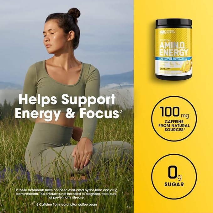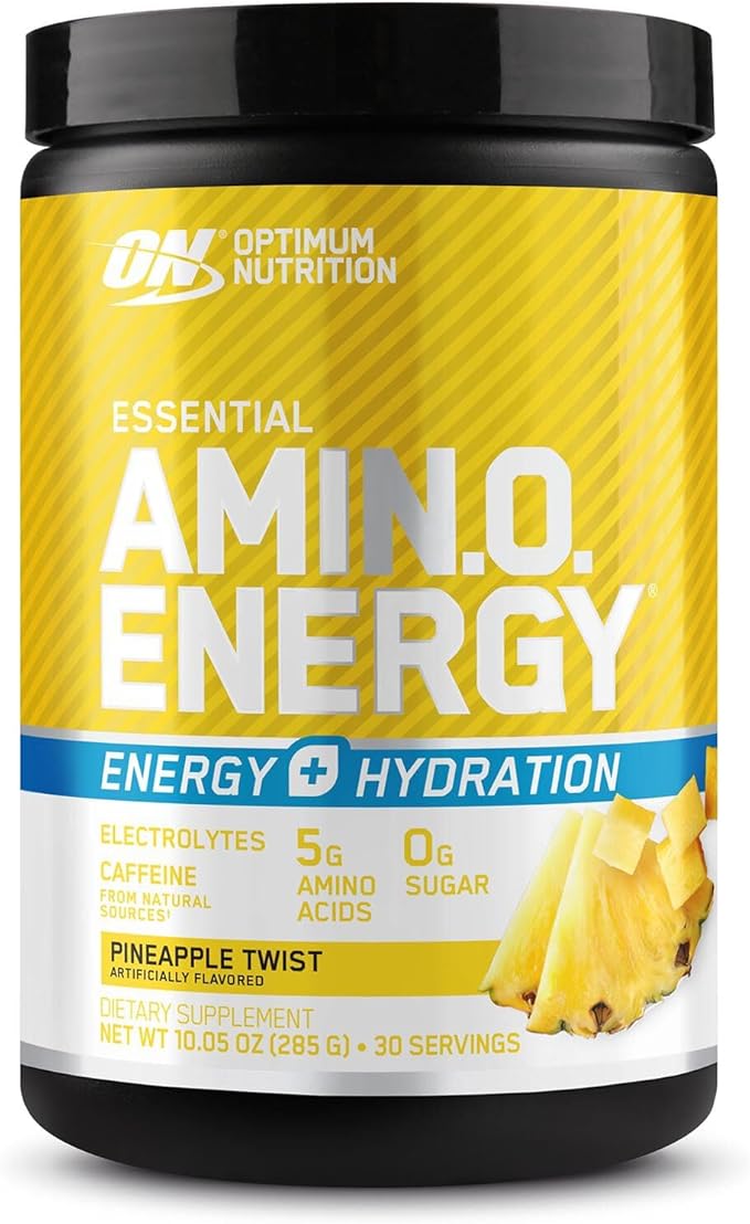 Optimum Nutrition Amino Energy Powder Plus Hydration, with BCAA, Electrolytes, and Caffeine, Pineapple Twist, 30 Servings (Packaging May Vary)