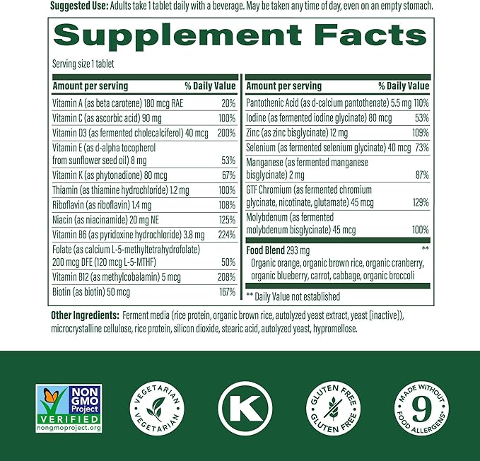 - All of our multivitamins are made with food-paired vitamins and fermented minerals, and can be taken any time of day, even on an empty stomach. 1 tablet daily