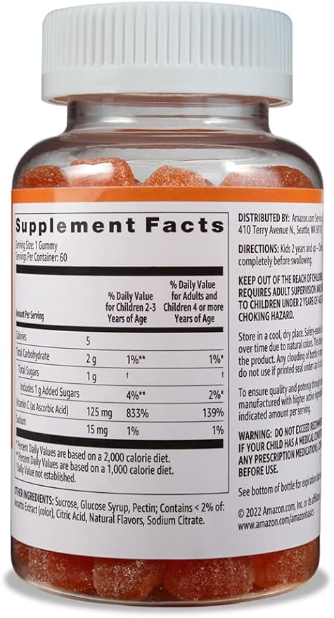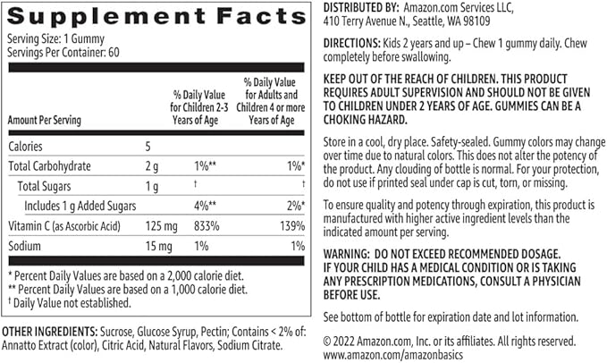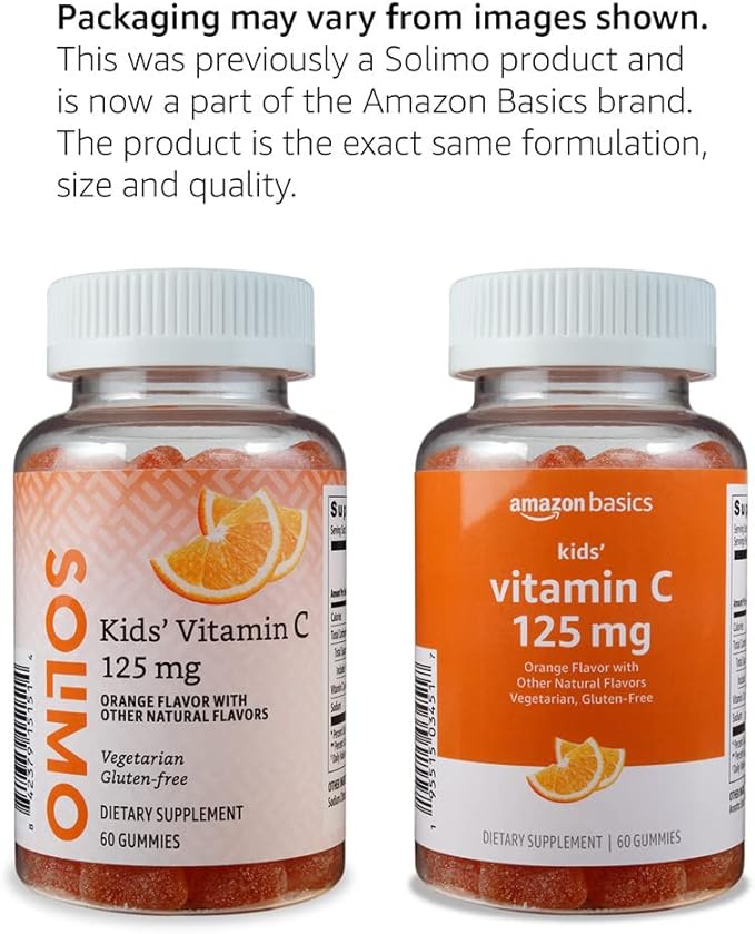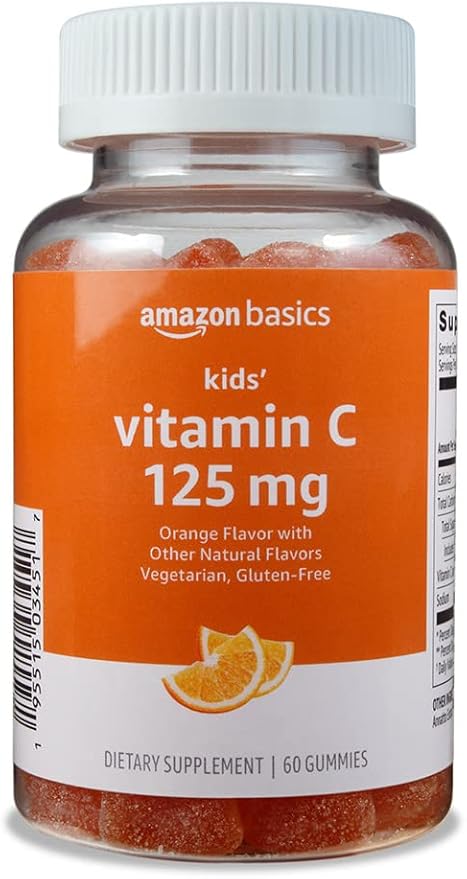 Amazon Basics Kids' Vitamin C 125mg Gummies, Orange, 60 Count, Immune Health, 2 Month Supply (Previously Solimo)