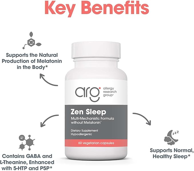 Allergy Research Group Zen Sleep - GABA L-Theanine Sleep Supplement for Adults with P5P, 5-HTP, and Vitamin B6, Natural Aid for Calm, Restful REM - 60 Vegetarian Capsules