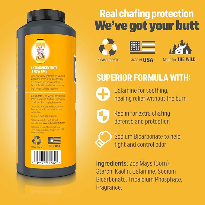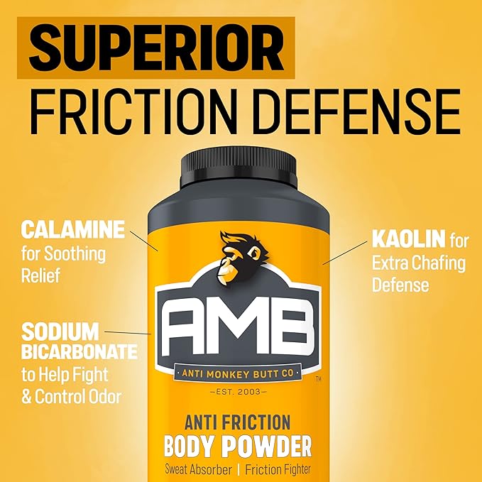 Anti Monkey Butt Body Powder for Women & Men - Talc-Free, Hypoallergenic Formula for Anti-Chafing & Anti-Itch Relief - Absorbs Sweat & Fights Friction with Calamine - 8 oz