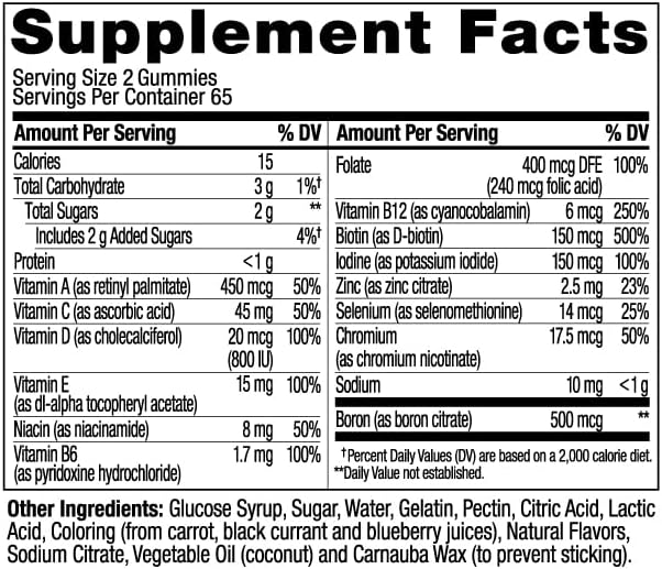 - DELIGHTFULLY TASTY: These women's multivitamins come in Berry flavor with other natural flavors with no synthetic colors or flavors and gluten-free. 130 gummies per bottle (65 day supply)
