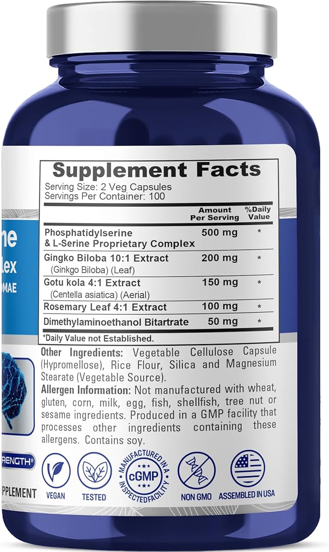 - Our complex contains Phosphatidylserine, L-Serine, Gingko Biloba, Gotu Kola, Rosemary Leaf, DMAE