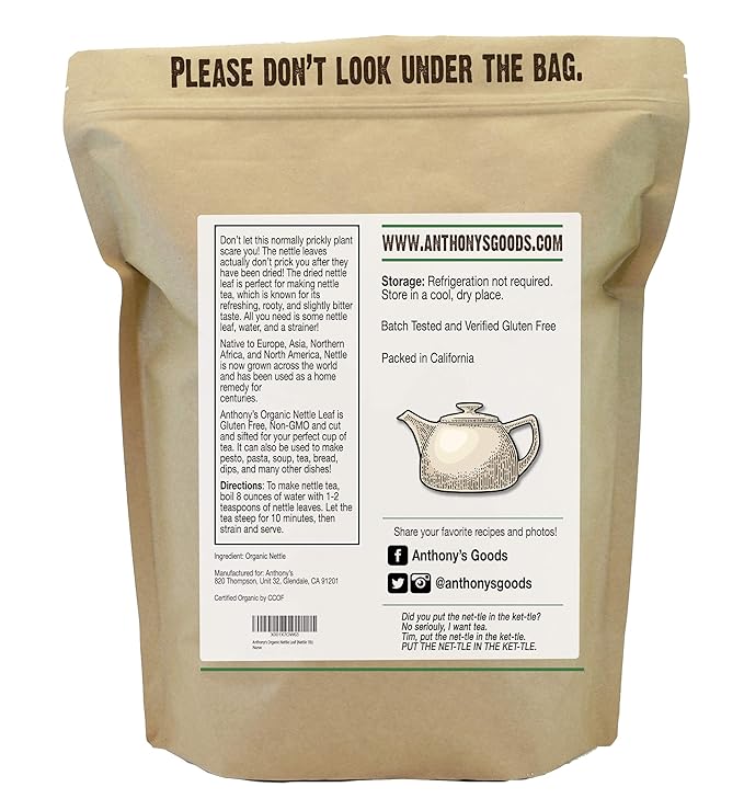 Anthony's Organic Nettle Leaf, 1 lb, Gluten Free, Non GMO, Cut & Sifted, Non Irradiated, Keto Friendly