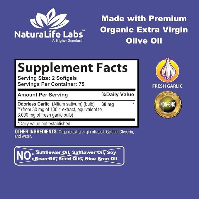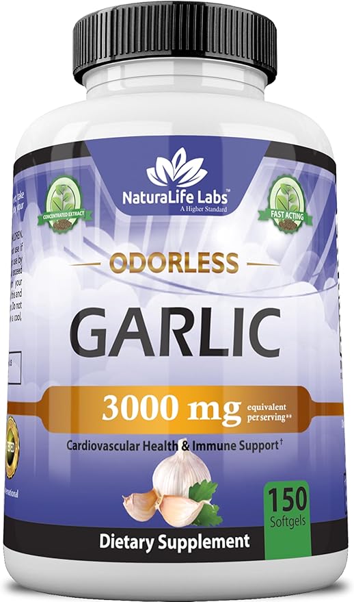 NaturaLife Labs A Higher Standard Odorless Garlic 3000 mg per Serving Immune System Support - 150 Soft gels
