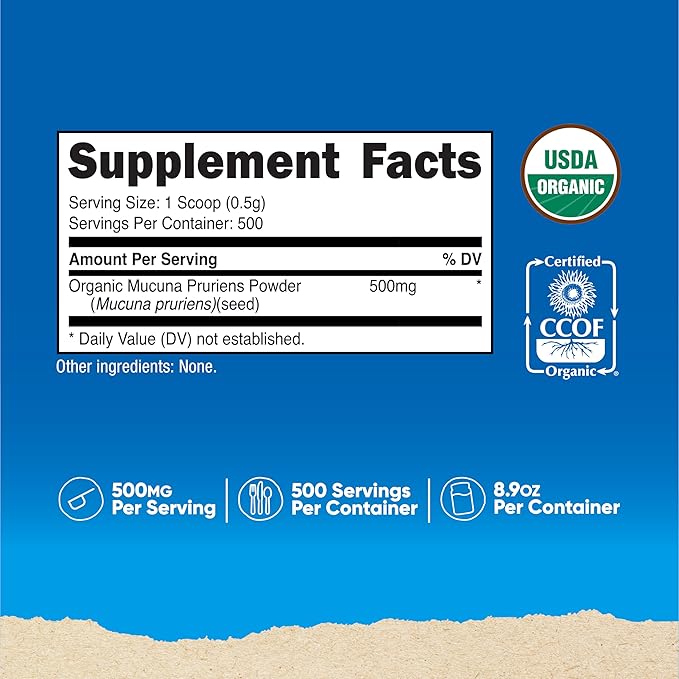 - 500mg of Organic Mucuna Pruriens in Every Serving (Scoop Included)
