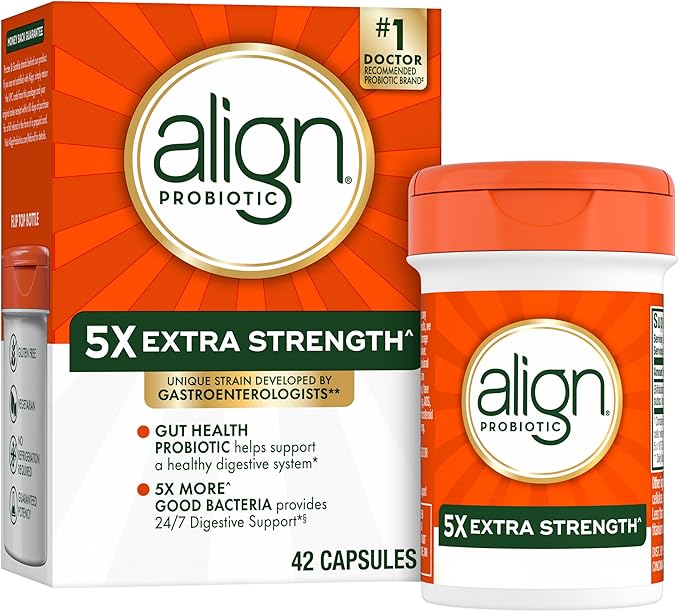 Align Probiotic Extra Strength, Probiotics for Women and Men, #1 Doctor Recommended Brand‡, 5X More Good Bacteria^ to Help Support a Healthy Digestive System*, 42 Capsules (Packaging May Vary)