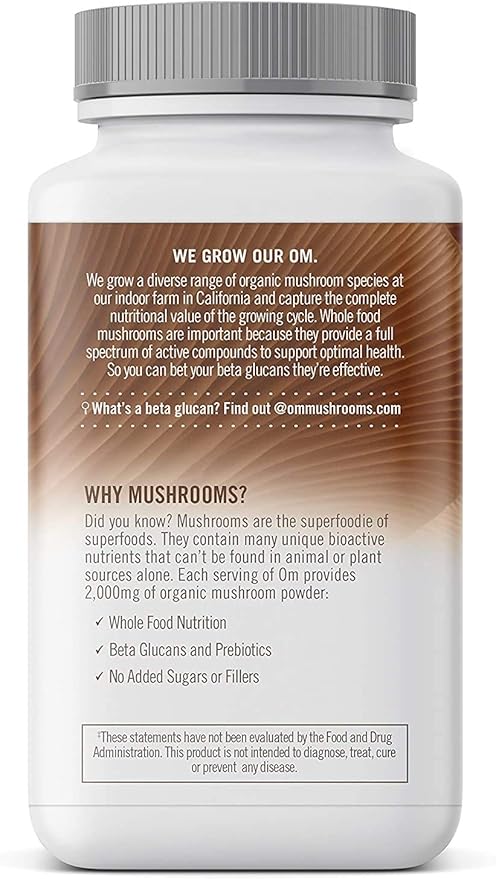 OM MUSHROOM SUPERFOOD Brain Fuel Mushroom Powder Capsules Superfood Supplement, 90 Count, 30 Days, Lion's Mane, Reishi Blend Plus Folate, Mental Clarity, Mushroom Supplement