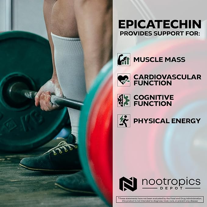 Nootropics Depot Epicatechin Tablets | 200mg (−)−Epicatechin + 6mg Piperine for Bioavailability | Green Tea Extract | Promotes Muscle Mass, Cardiovascular Health, and Energy | 30 Count