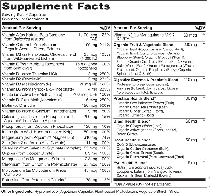 - COMPLETE MULTIVITAMIN FOR MEN: The Naturelo Whole Food Multivitamin for men, a renowned multi vitamins option, is formulated with a blend of organic fruits and vegetables along with essential vitamins and minerals to support health and wellbeing.*