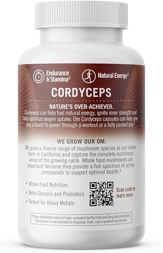 - Supports overall vitality and endurance: Om's Cordyceps mushroom supplement supports oxygen consumption and delivery to increase energy levels