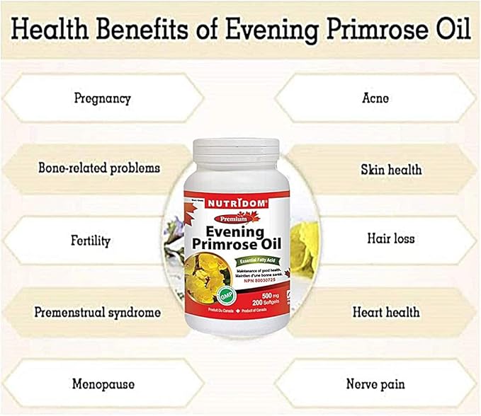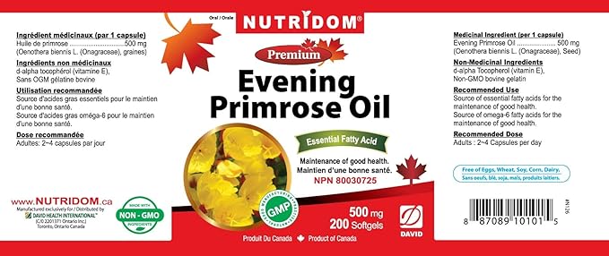 - Canadian Natural,Nutridom,Evening Primrose Oil is a source of essential fatty acids, linoleic acid, and omega-6 fatty acids for maintenance of good health.