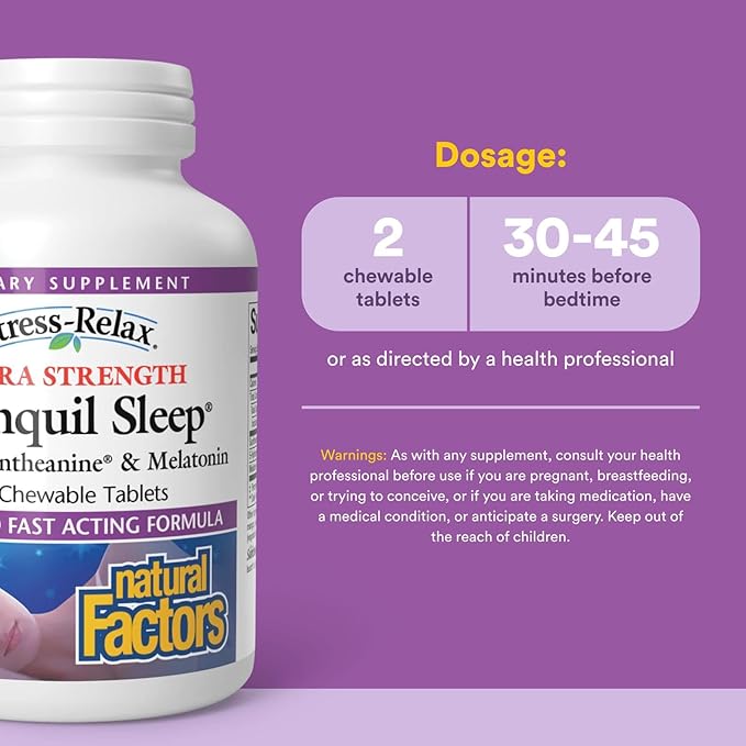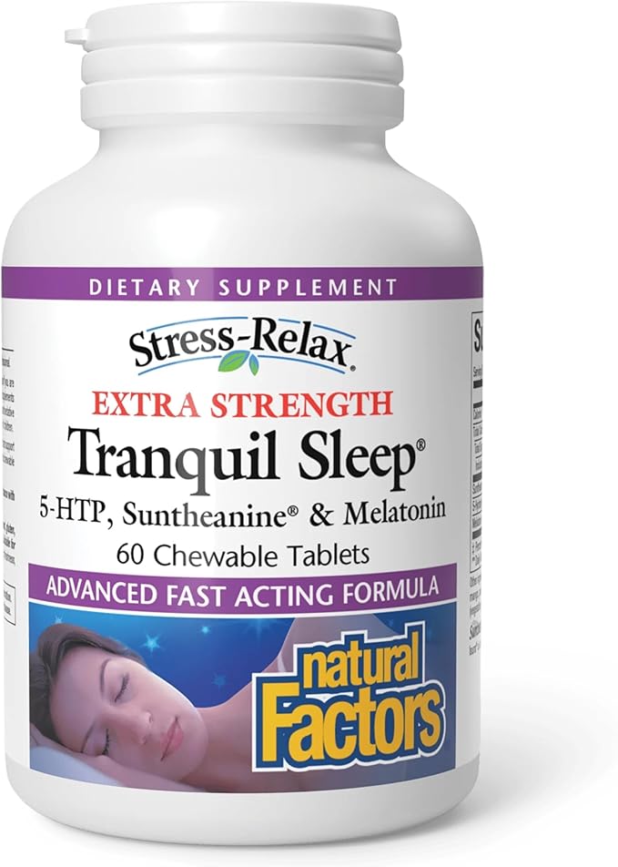 Natural Factors Stress-Relax Tranquil Sleep Extra Strength, with Suntheanine L-Theanine, 5-HTP, Melatonin, 60 Tablets