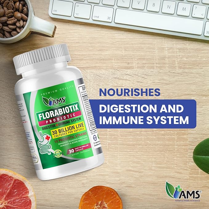 America Medic & Science Florabiotix Probiotic (30 Capsules) | Dietary Supplement for Men and Women| 30 Billion Live Cultures | 10 Probiotic Strains | Supports Digestive and Immune Health