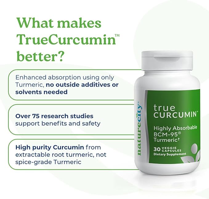 NatureCity True-Curcumin Turmeric Supplement | Non-GMO Tumeric and Curcumin 500mg Curcuma Capsules Vitamin Supplements | Up to 700% Increase in Absorption (60 Day Supply) | Supports Joints