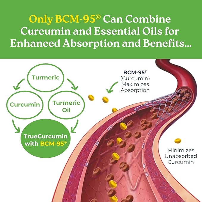 - ABSORB UP TO 700% MORE CURCUMIN – BCM-95’s blend of curcumin and natural essential oils from turmeric enhances curcumin absorption by up to 700%, compared to regular curcumin and curcumin combined with black pepper extract (piperine), and can stay in the bloodstream longer, which improves efficacy.