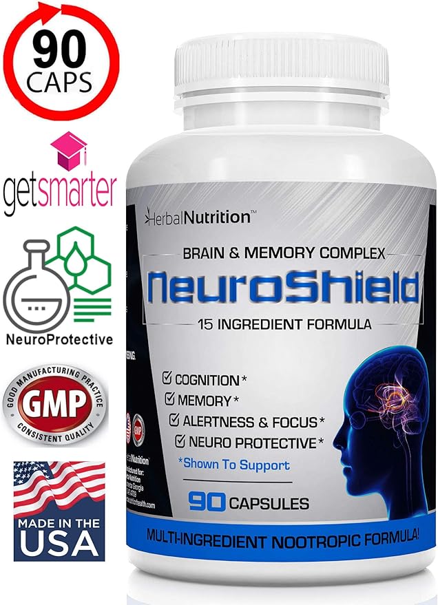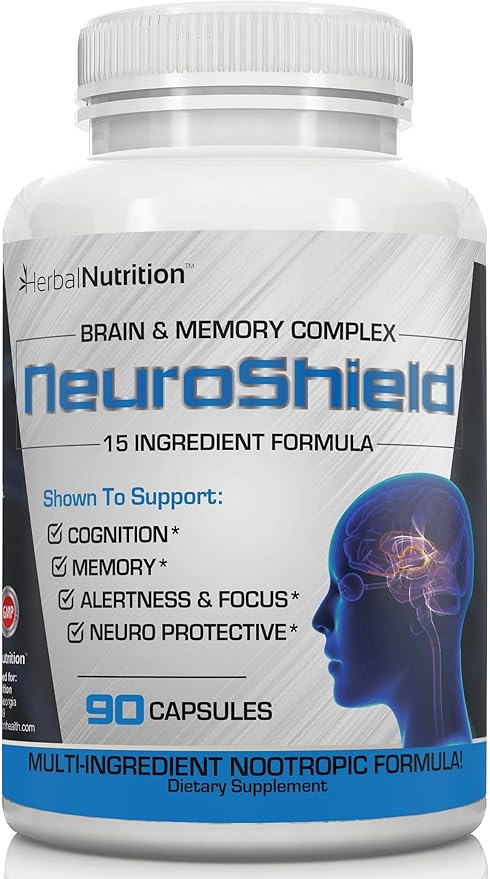 NeuroShield, Brain Supplement a Nootropic Brain Booster and Memory Supplement, Contains Huperzine A, Ginko Biloba, Bacopa Plus Antioxidants for Brain Health, Multi-Ingredients, 1 Bottle, 90 Capsules