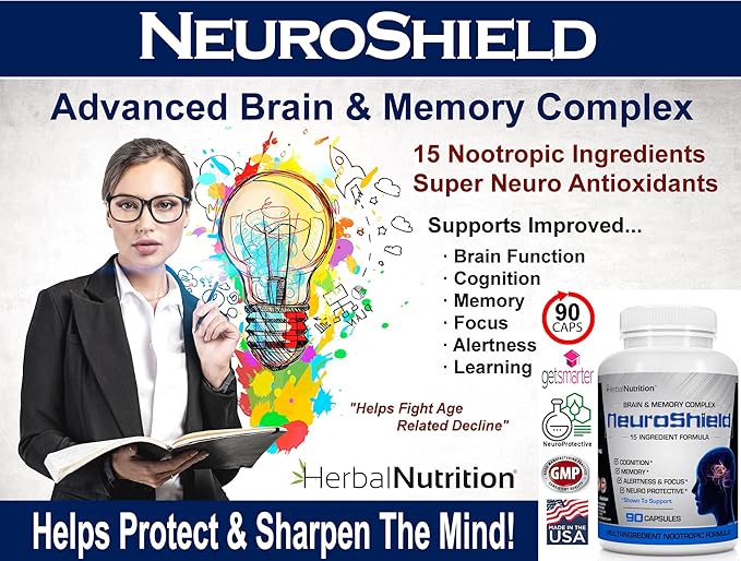 - Neuroprotective Brain Booster - NeuroShield has ingredients to protect the brain from decline and damage that comes as we age. Among others, Huperzine A, Bacopa, Ginkgo Biloba, Rhodiola Root, A-GPC & Artichoke Extract have protective properties in addition to cognitive benefits. Rich in antioxidants that target the brain, NeuroShield is neuroprotective, meaning it promotes repair while preventing oxidative damage. The B vitamins (3.6,12) play a critical role in general neural health and repair.