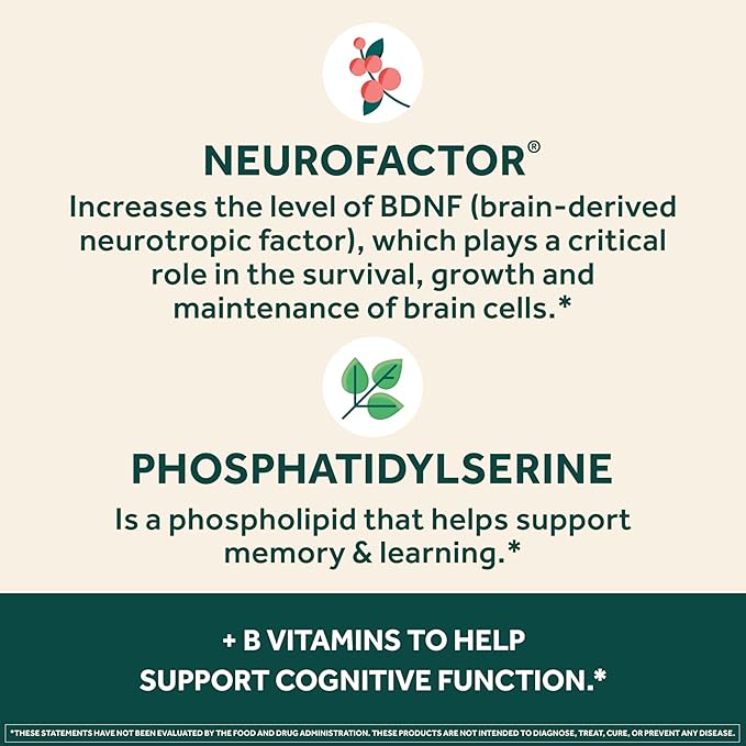 - Special Ingredients : Neurofactor, Phosphatidylserine, Vitamin B12