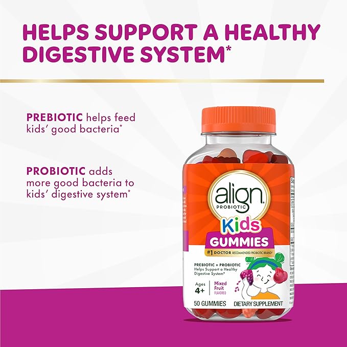 Align Probiotic, Kids Gummies, Prebiotic + Probiotic helps support a healthy digestive system*, #1 Doctor Recommended Probiotic Brand‡, 50 Gummies Packaging may vary