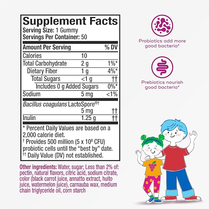 - PROBIOTICS. Align Probiotic Kids Gummies contain the probiotic, Bacillus Coagulans LactoSpore to add more good bacteria to kids’ digestive tract and help support a healthy digestive system.*