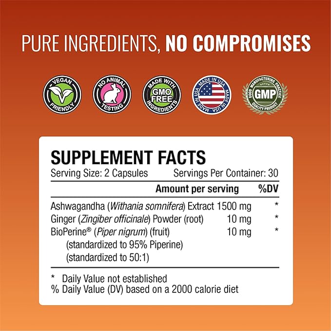 Approved Science Ashwagandha 1500mg with Bioperine® and Ginger - Mood and Energy Support - 60 Vegan Friendly Capsules - 1 Month Supply