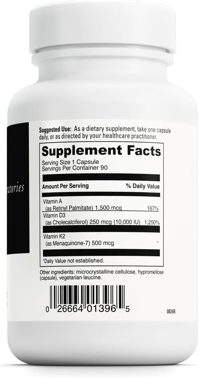 DAVINCI Labs ADK 10 - Helps Support Bone, Heart & Immune Health - Dietary Supplement with Vitamins A, D3 & K2 (as MK-7) - Vegetarian, Gluten Free & Soy Free - 90 Capsules