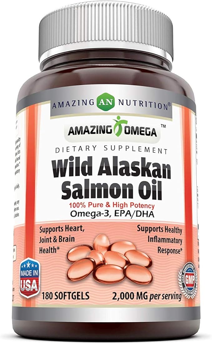 Amazing Omega Wild Alaskan Salmon Oil 2000mg Per Serving Softgels Supplement (180 | 2 Pack)