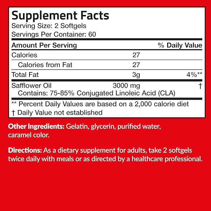 - High Potency: Providing 2250 mg of active CLA per 2 softgels.