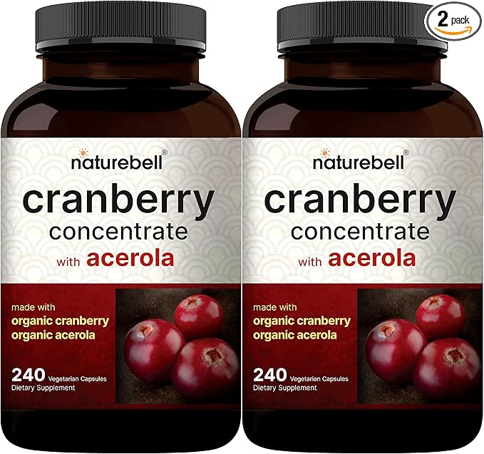 NatureBell 2 Pack Cranberry Pills 36,000mg with Acerola, 480 Total Veggie Capsules | 100:1 Fresh Cranberries Extract – Organic Ingredients – Supports Urinary Tract Health – Sugar Free