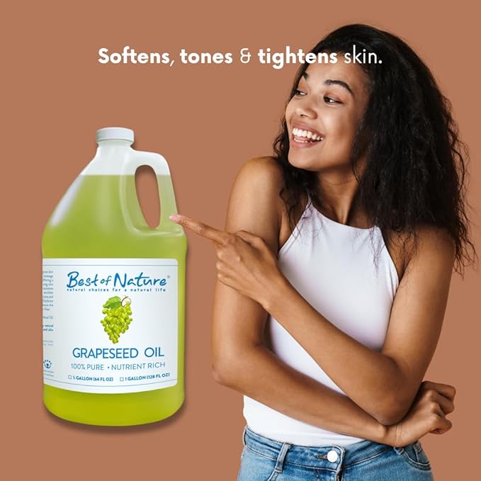 Best of Nature 100% Pure Grapeseed Oil - Unscented, Lightweight, Non-Greasy Moisturizer for Hair, Skin, Face & Aromatherapy, Carrier Oil for Essential Oils, 5 Gallon Pail (640 fl oz)