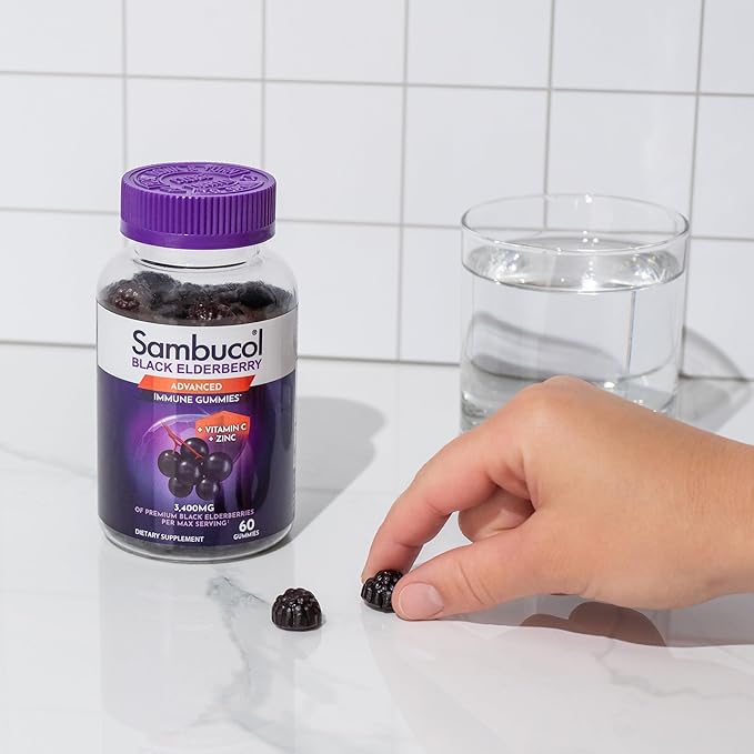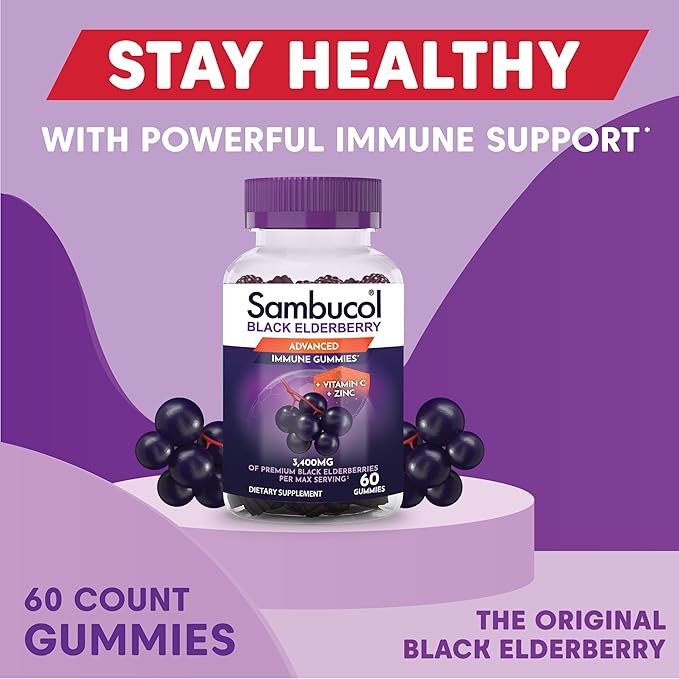 Sambucol Black Elderberry Gummies - Elderberry with Zinc and Vitamin C for Adults, Sambucus Elderberry Gummies, Immune Support Gummies - 60 Count
