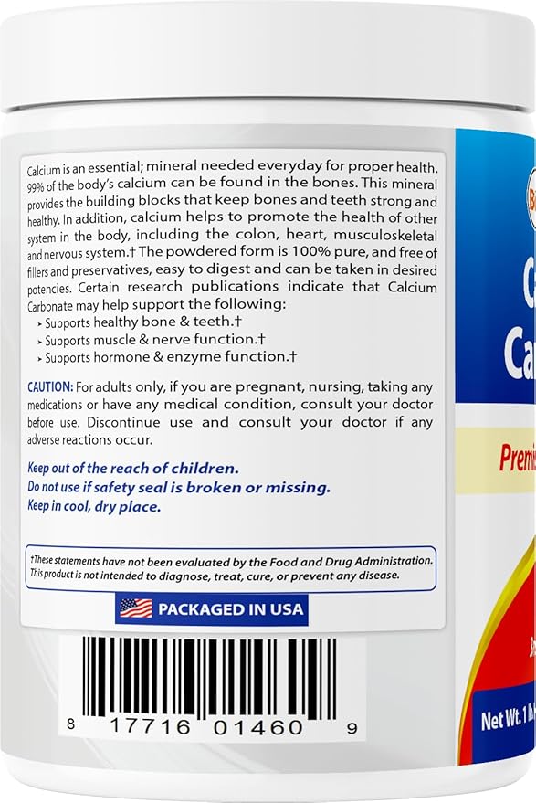 2 Pack - Best Naturals Calcium Carbonate Powder 1 Pound (Total 2 Pound) - Food Grade