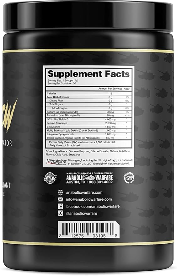 - Premium Ingredients: All Anabolic Warfare premium supplements are made at our cGMP facility. Every stimulant free preworkout, as well as our other products are formulated in a safe environment.