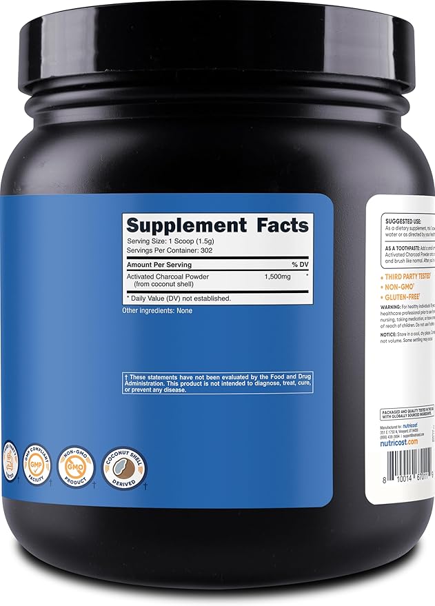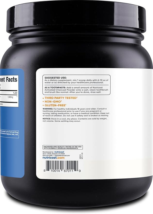 Nutricost Activated Charcoal Powder 1lb - Food Grade Powder, Toothpaste, Facemask, Odor Control, Vegetarian, Gluten Free, Non-GMO