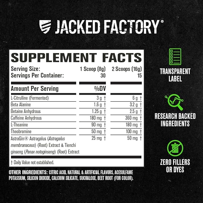 - Manufactured in a cGMP-Certified Facility: All Jacked Factory products are manufactured under stringent quality control standards to ensure proper purity and potency. This formula is completely free of harsh chemicals, fillers, and artificial food dyes.