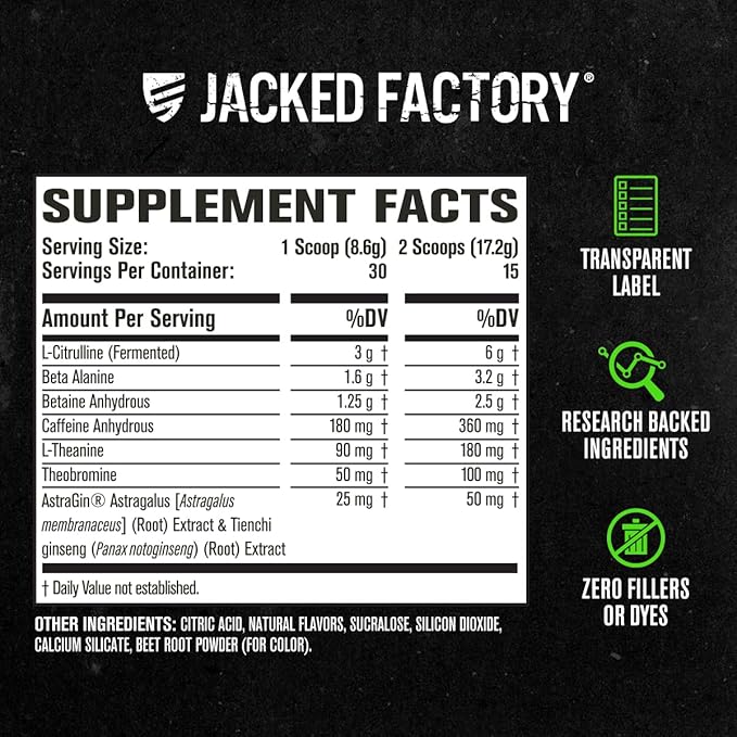 - Manufactured in a cGMP-Certified Facility: All Jacked Factory products are manufactured under stringent quality control standards to ensure proper purity and potency. This formula is completely free of harsh chemicals, fillers, and artificial food dyes.