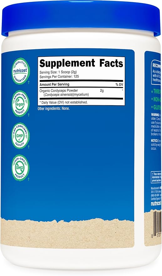 Nutricost Organic Cordyceps Mushroom Powder 250 Grams - USDA Certified Organic, Non-GMO, Gluten Free