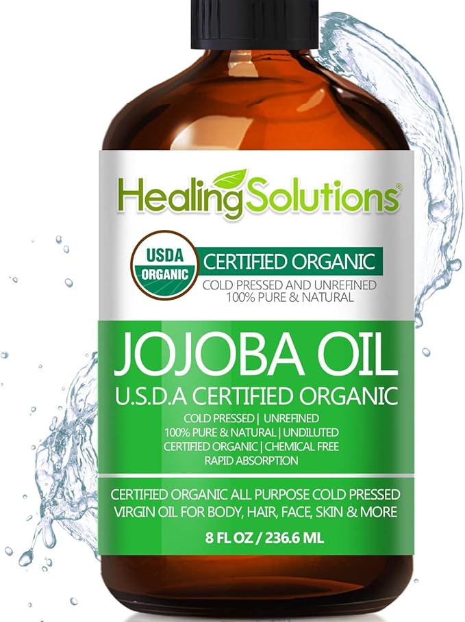 Healing Solutions Oils - 8 oz Jojoba Oil Organic Pure & Natural, Cold Pressed Unrefined, Hexane & Chemical Free, All-Natural Solution for Face & Hair, Fights Acne, Moisturizes Skin