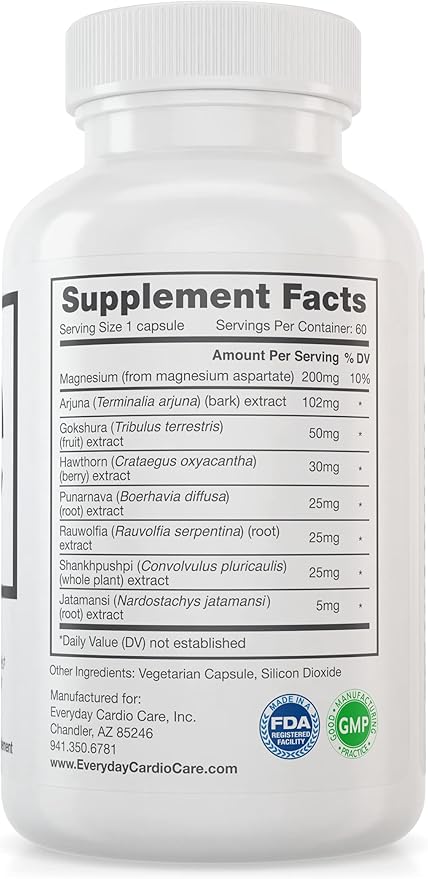 - ALL NATURAL & CLINICALLY PROVEN: Contains magnesium aspartate, arjuna, gokshura, hawthorn berry extract, punarnava, rauwolfia, shankhpushpi and jatamansi. All natural holistic herbal ingredients sourced directly from the actual growers. We oversee the entire manufacturing process—from farm to bottle—for the highest quality product possible.