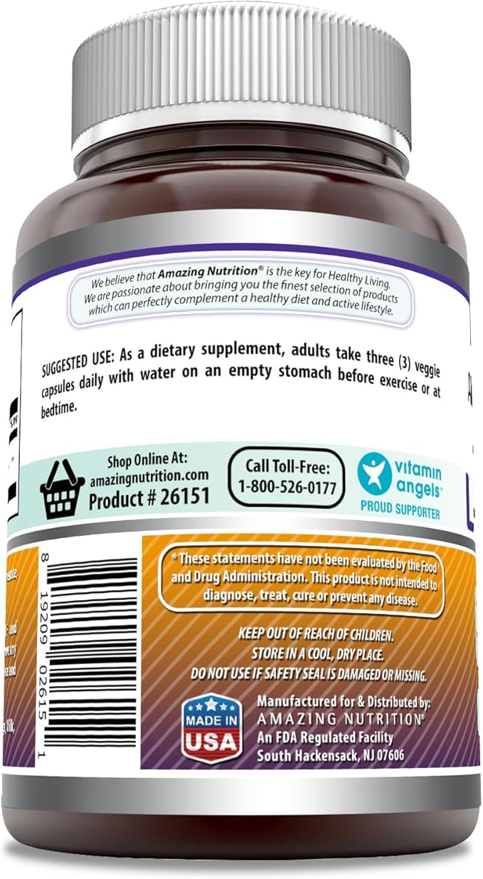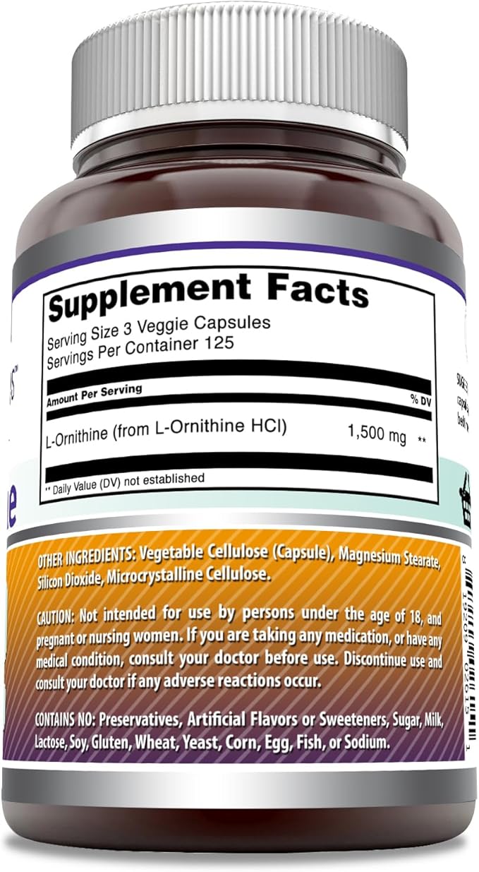Amazing Formulas L-Ornithine Supplement | 1500 Mg Per Serving | 250 Veggie Capsules | Non-GMO | Gluten Free | Made in USA