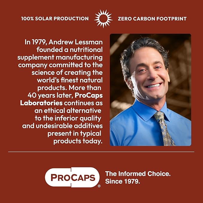 - Ethical & eco-friendly. Zero carbon footprint - Uniquely committed to your health and the health of the planet, ProCaps’ facilities are 100% Solar Powered with a Zero Carbon Footprint and an LEED Gold green building status. All ProCaps bottles are made from 100% recyclable post-consumer resin. Plus, Andrew Lessman and ProCaps are the largest donor of prenatal vitamins in the world (over 2 billion capsules donated to date). ProCaps, the Informed Choice for Nutritional Supplements.