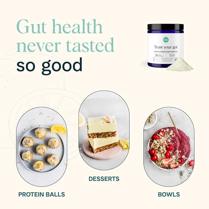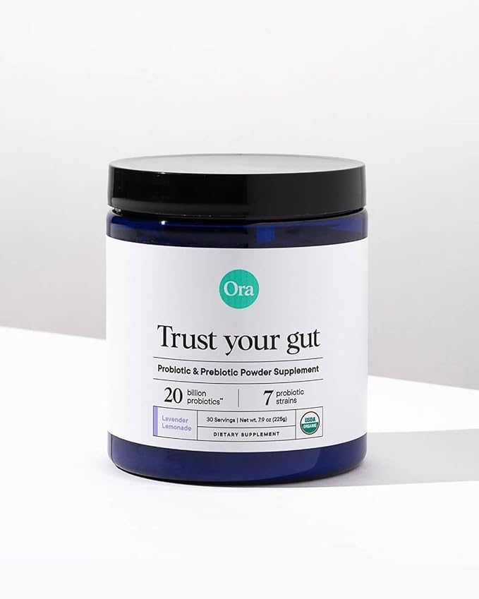 Ora Organic Prebiotic and Probiotic Powder Supplement - 20 Billion Probiotics, 7 Strains for Best Prebiotic Powder, Non-GMO, Probiotics for Women, Men & Kids - Lavender Lemonade Flavor, 30 Servings