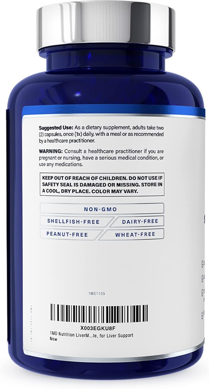 1MD Nutrition LiverMD - Liver Support Supplement | Siliphos Milk Thistle Extract & NAC - Supports Healthy Energy, Immunity & Overall Health - Liver Cleanse & Support | 60 Capsules