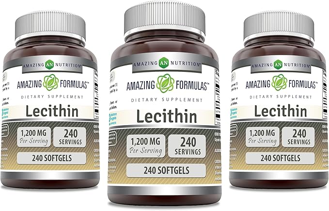 Amazing Formulas Lecithin 1200 mg Softgels Supplement | High Potency | Non-GMO | Gluten Free (3 Pack, 240 Count)