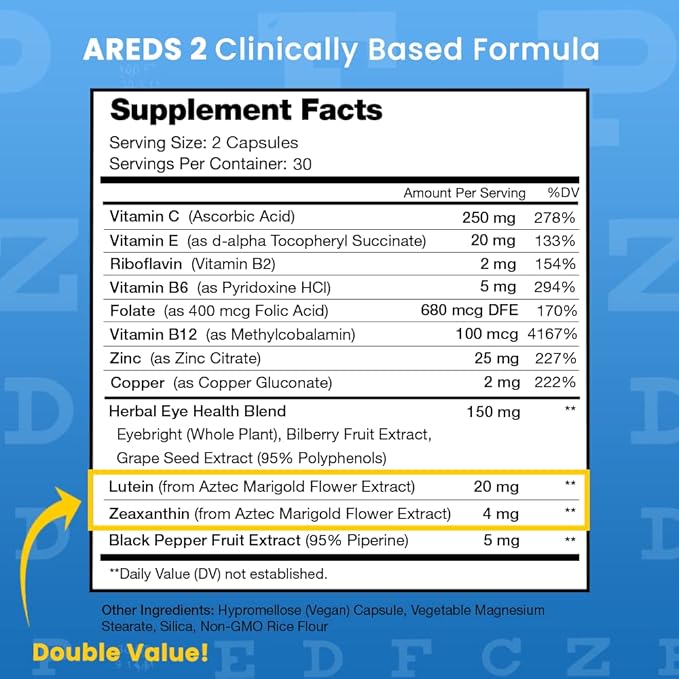 - Advanced AREDS 2 Formula - Our formula is fortified with essential vitamins B, C, E, Zinc, and Copper to nourish vision and eye health.