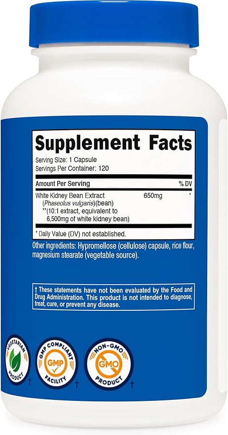 Nutricost White Kidney Beans Capsules 6,500mg Equivalent, 120 Capsules - Vegetarian Caps, Gluten Free and GMO Free