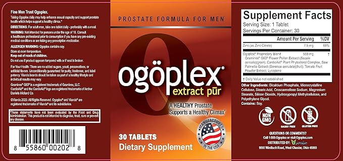 - Ogoplex is a doctor-formulated premium, natural supplement formulated with Graminex Flower Pollen (a clinically tested, powerful upgrade to our previous formula’s generic Swedish Flower Pollen), Plant Phytosterols, Saw Palmetto, and Lycopene. Taken daily, Ogoplex may help enhance sexual capacity and maintain urinary function, support prostate health for a healthy climax, and enjoy a better sexual experience.