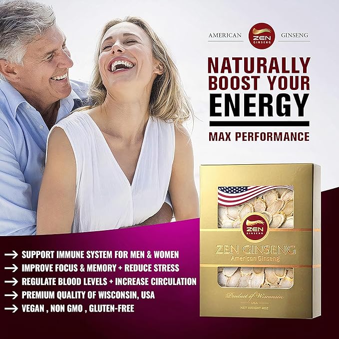 2 Boxes of American Wisconsin Ginseng Slices - Improved Energy, Performance, & Mental Health for Men & Women. Total 8 Oz.