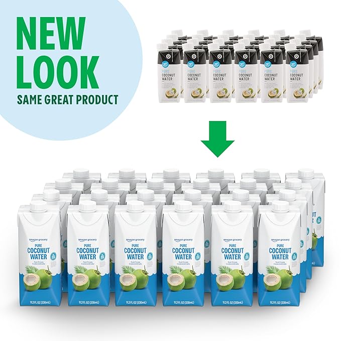 Amazon Grocery, Pure Coconut Water, 11.2 Fl Oz, 24 Ct (Previously Happy Belly, Packaging May Vary)